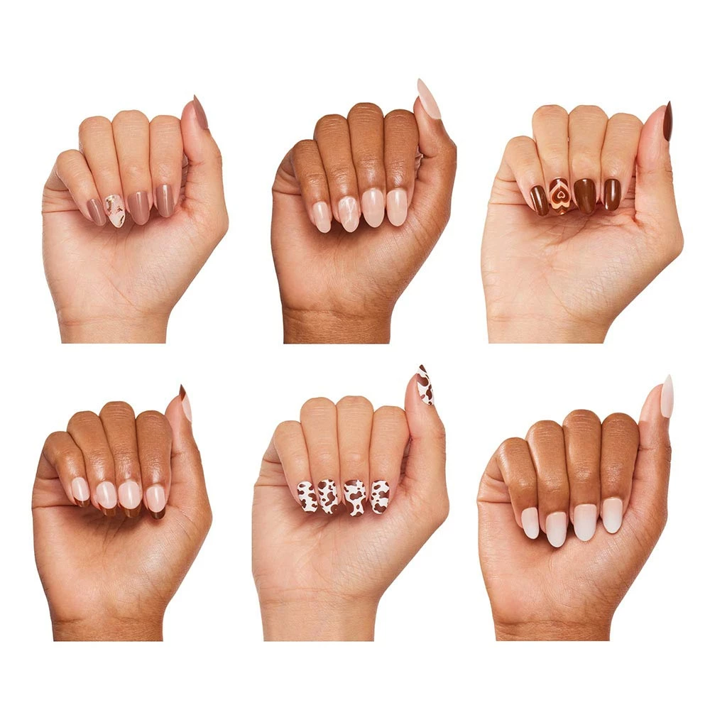 - Sugar & Spice: Sugar, spice, and everything nice! These rich cocoa nails will last you through your study breaks and cozy dates. The real star is the heart accent nail, layered with various brown hues to delight your mani senses!