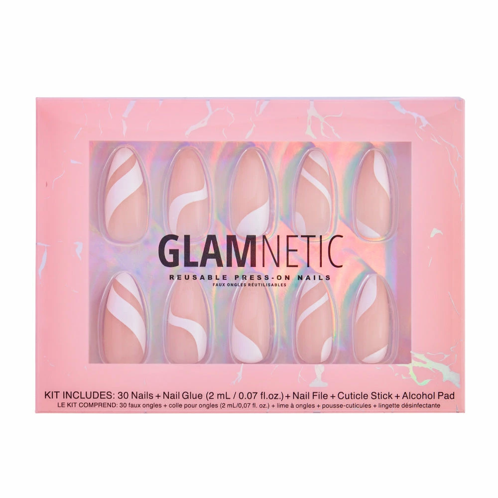 Want sβmore flawless nail looks? We have the new mani look youβre craving with our Marshmallow Swirl Press-On Nails! This set features a semi-transparent, natural base with totally delectable white swirls reminiscent of your favorite bonfire snack. Offered in an elongated medium, almond shape β they will always look seamlessly fab, like your very own nails, but better! Get ready to elevate all your summer night (or day) looks with these pretty press-onβs.