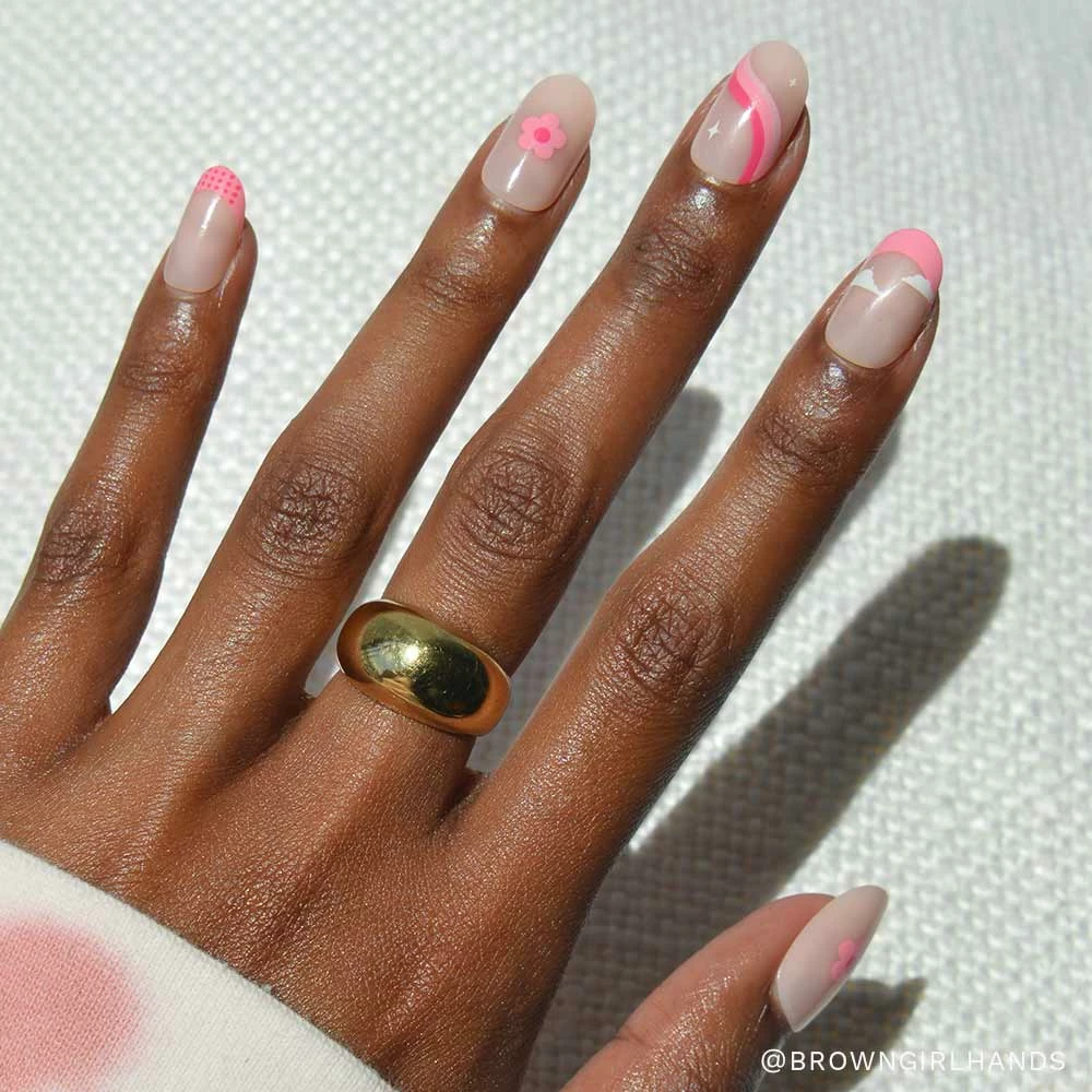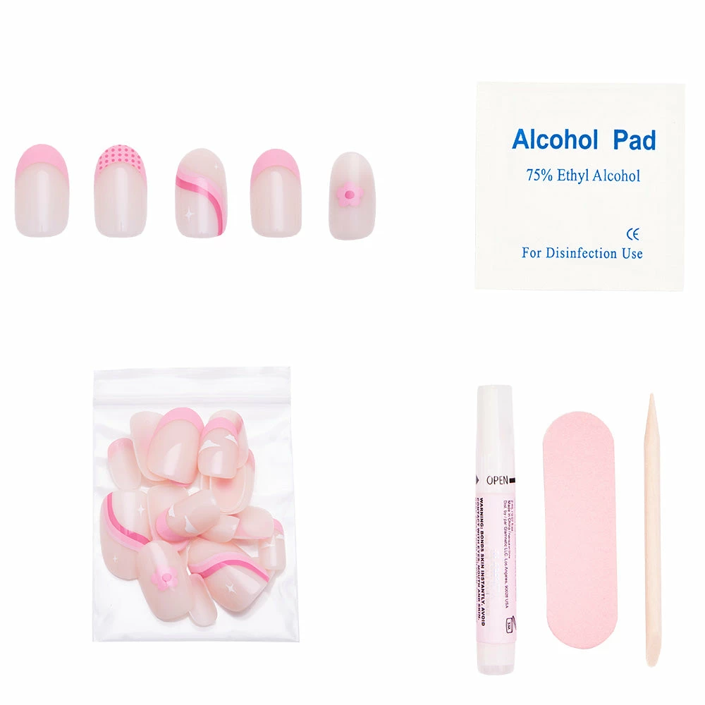 Elevate your everyday nails with our Pretty Picnic Nail Set! This adorable style features the cutest array of pink french tips with varied accent nails of waves, flowers and more. Plus, our super popular short-round shape offers a natural and versatile style that works well with all your day-to-night looks.