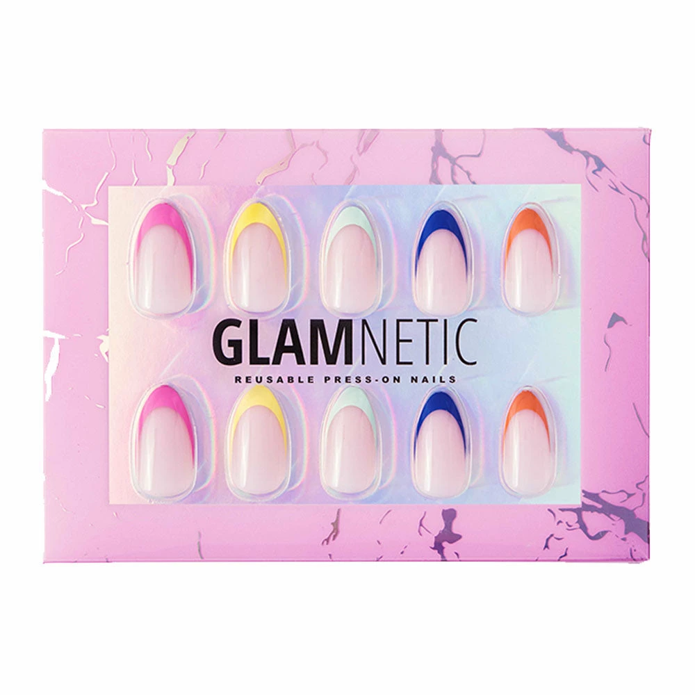 Bring out your sweeter side with this quirky twist on a classic style. Every nail in the Sprinkles set features a french tip with a pop of bright color to match your more vibrant qualities. This set is made to bring some fun to casual wear with a short, almond shaped finish that wonโt get in the way of your day. The UV finish and semi-transparent look provide a natural appearance to your nails. No one would ever guess that you applied these nails yourself in less than 15 minutes.ย
