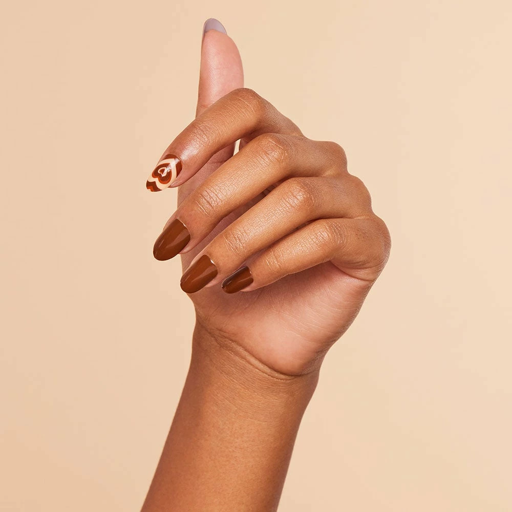 Sugar, spice, and everything nice! These rich cocoa nails will last you through your study breaks and cozy date nights. The real star is the heart accent nail, layered with various brown hues to delight your mani senses! Weโre totally in love with this look, and we know you will be too.